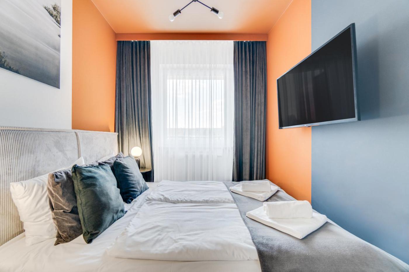 Apartament z 1 sypialnią i balkonem. This air-conditioned apartment comes with 1 living room, 1 separate bedroom and 1 bathroom with a shower. In the kitchen, guests will find a stovetop, a refrigerator, a dishwasher and kitchenware. This apartment has a washing machine, a coffee machine, a flat-screen TV and a patio. The unit has 2 beds. Apartament - 4 osobowy. Powierzchnia pokoju ok.: 32 mkw.